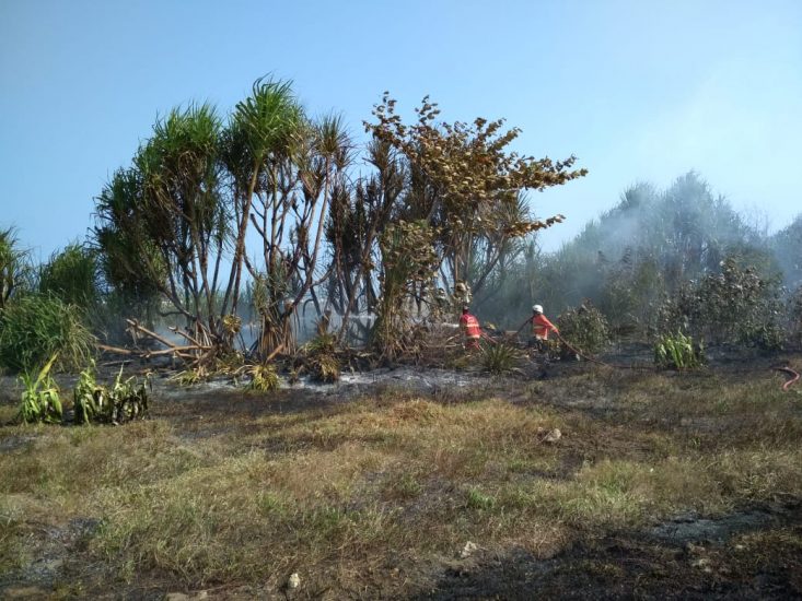 Kebakaran Lahan Rumput di Beach Strip Susi Air Pangandaran