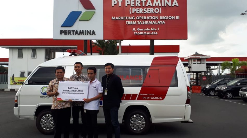 Tasikmalaya — Jum’at, 13 Juli 2018 Dinas Pemadam Kebakaran dan Penanggulangan Bencana Kabupaten Pangandaran mendapatkan bantuan 1 Unit Mobil Ambulance dari PT. Pertamina (Persero) Jakarta Pusat, untuk penyerahan bantuan tersebut di wakili oleh Yunior Officer CSR MOR III Taufiq Kurniawan dan didampingi unsur pimpinan PT. Pertamina MOR III TBBM Tasikmalaya, bantuan tersebut diterima langsung oleh Kepala Dinas Pemadam Kebakaran dan Penanggulangan Bencana H. Nana Ruhena. Penyerahan ambulance tersebut dilaksanakan di PT. Pertamina (Persero) Marketing Operation Region III TBBM Tasikmalaya pada pukul 15.30 WIB.