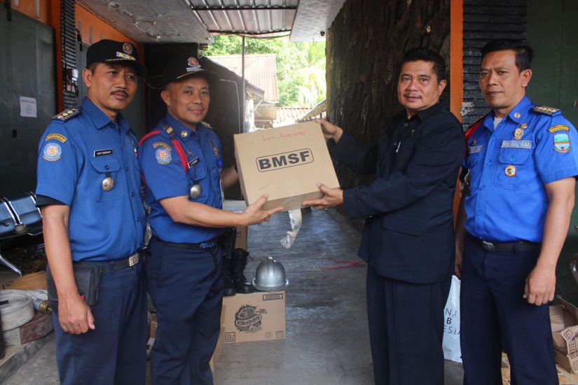 Perbandingan luas cakupan wilayah pelayanan penanganan kebakaran yang begitu tidak seimbang atau boleh dikatakan tidak memenuhi standar, kami berusaha dan berupaya mencari solusi dengan keterbatasan anggaran melalui hubungan pertemanan dan kepedulian antara petugas pemadam kebakaran. Alhamdulillah beban kekurangan dan keterbatasan peralatan damkar terealisasi pada hari ini mendapat bantuan hibah peralatan damkar mulai dari Alat Pelindung Diri (APD), alat pendukung pemadaman kebakaran, bahkan sampai dengan pakaian anggota damkar yang kalau diuangkan sebesar Rp 300.000.000.’-.
