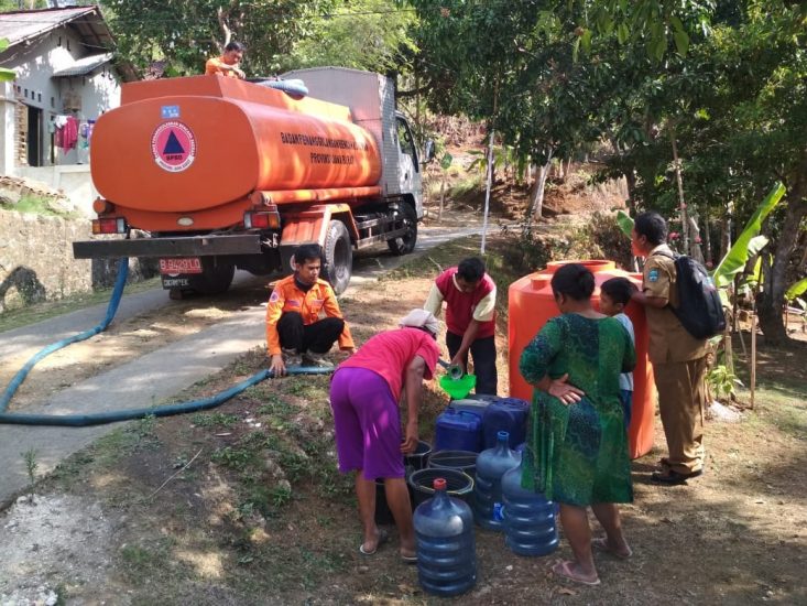 Pagi tadi, Dinas Pemadam Kebakaran dan Penanggulangan Bencana Kabupaten Pangandaran mendistribusikan air bersih di 2 Kecamatan yaitu Kecamatan Cijulang dan Kecamatan Kalipucang. Melalui Bidang Logistik, Rehabilitasi dan Rekonstruksi mendistribusikan 10.000 Liter air bersih ke Dusun Cidawung Desa Margacinta dan Dusun Karangsari Desa Banjarharja.