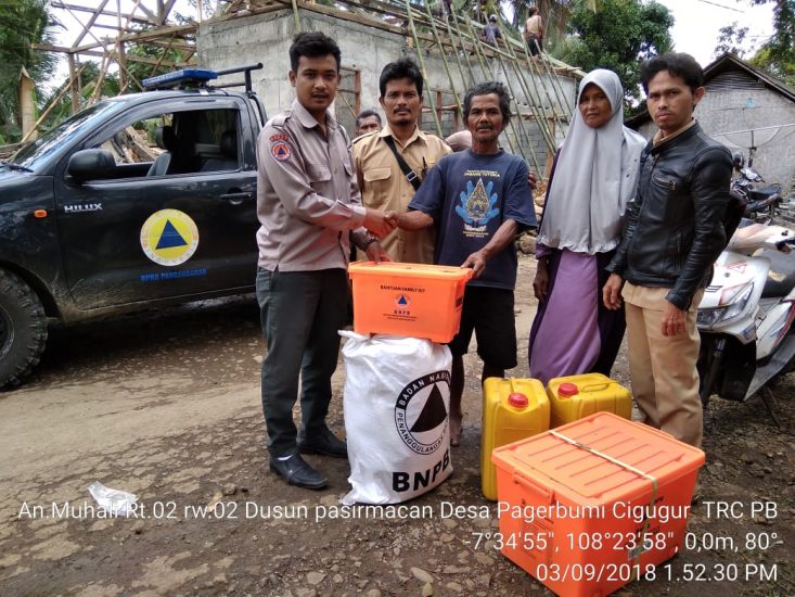 Cigugur — (3/9) Dinas Pemadam Kebakaran dan Penanggulangan Bencana (DPKPB) Kabupaten Pangandaran melalui Bidang Rehab Rekon dan Logistik memberikan bantuan Logistik untuk korban kebakaran di Dusun Pasirmacan RT 02 RW 02 Desa Pagerbumi Kecamatan Cigugur Kabupaten Pangandaran yang terjadi pada hari Minggu (2/9) pukul 02.00 WIB.