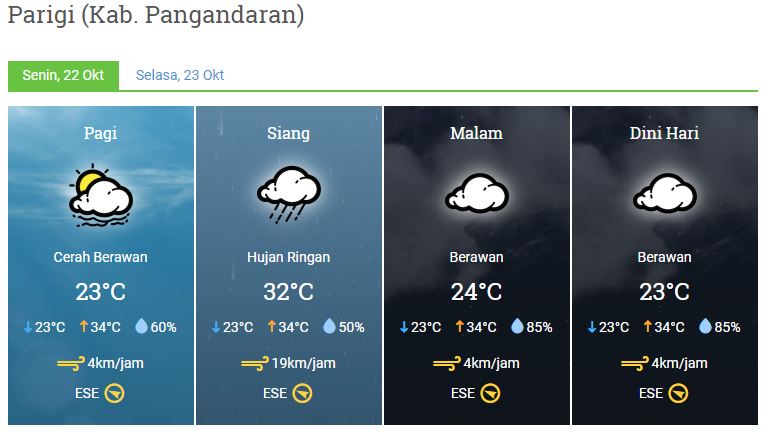 Laporan Harian & Prakiraan Cuaca Kabupaten Pangandaran – Senin, 22 Oktober 2018
