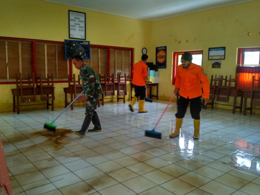 Bersih-Bersih Pasca Banjir Di SDN 2 Cintaratu