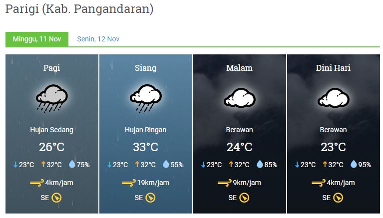 Kecepatan Angin : 4 km/jm – 19 km/jam