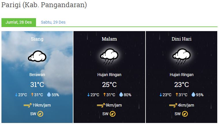 Laporan Harian dan Prakiraan Cuaca Kabupaten Pangandaran – Jumat, 28 Desember 2018