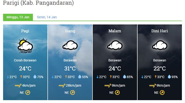 Laporan Harian & Prakiraan Cuaca Kabupaten Pangandaran – Minggu, 13 Januari 2019