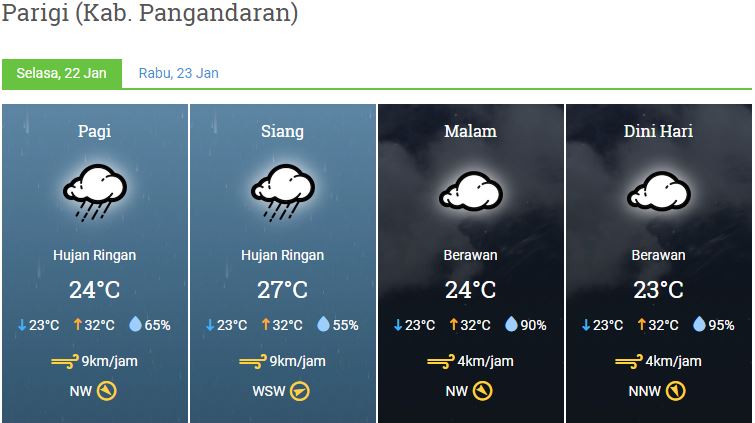 Laporan Harian & Prakiraan Cuaca Kabupaten Pangandaran – Selasa, 22 Januari 2019