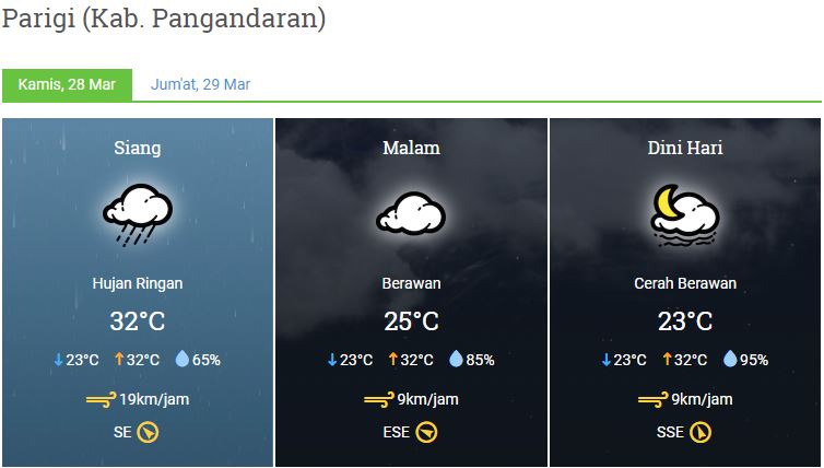 Laporan Harian Dan Prakiraan Cuaca Kabupaten Pangandaran – Kamis, 28 Maret 2019