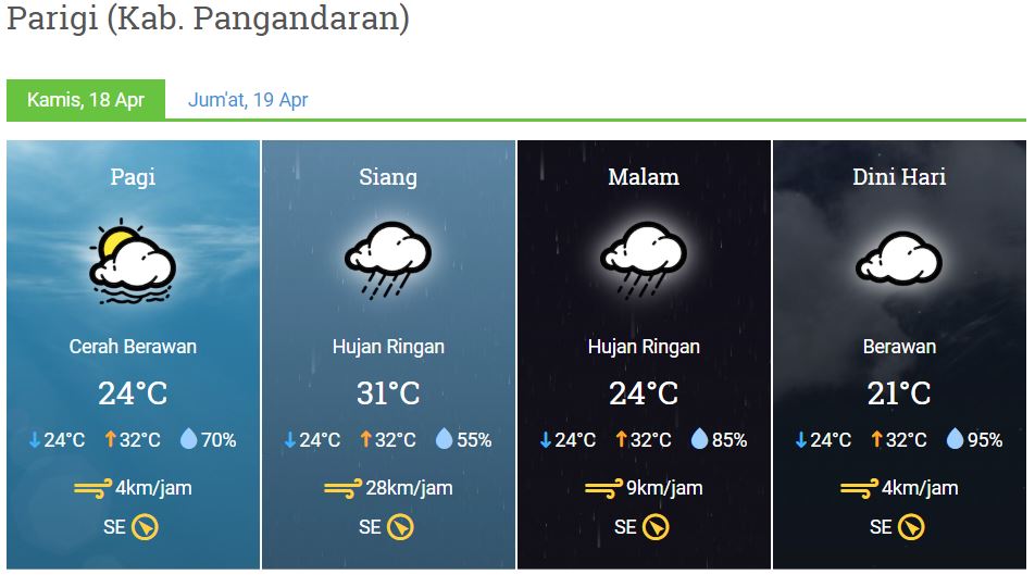 Laporan Harian & Prakiraan Cuaca Kabupaten Pangandaran – Kamis, 18 April 2019