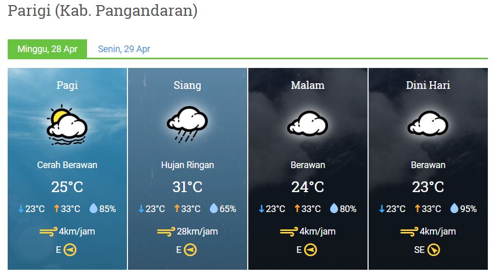 Laporan Harian & Prakiraan Cuaca Kabupaten Pangandaran – Minggu, 28 April 2019