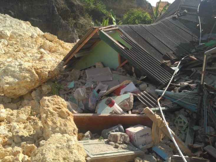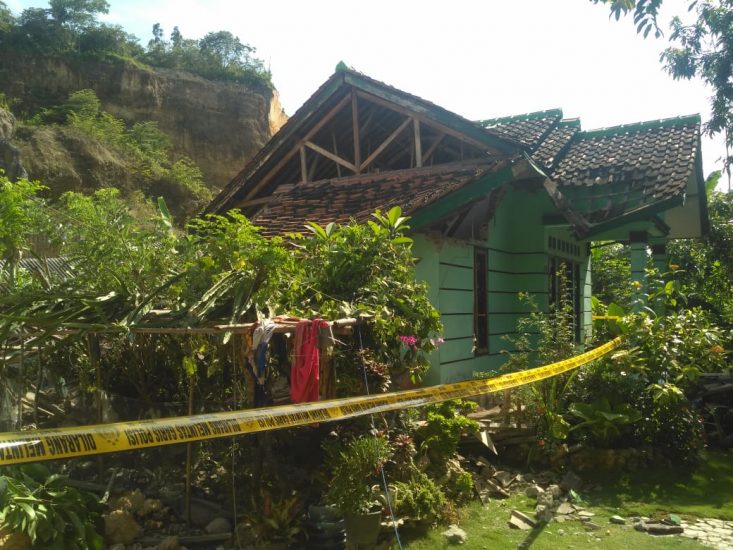 4. Kronologis : Pada pukul 12.00 WIB korban sedang berada di rumahnya usai sholat Duhur, tiba-tiba terdengar suara gemuruh yang ternyata bukit batu setinggi 35 meter menimpa 2 rumah warga.