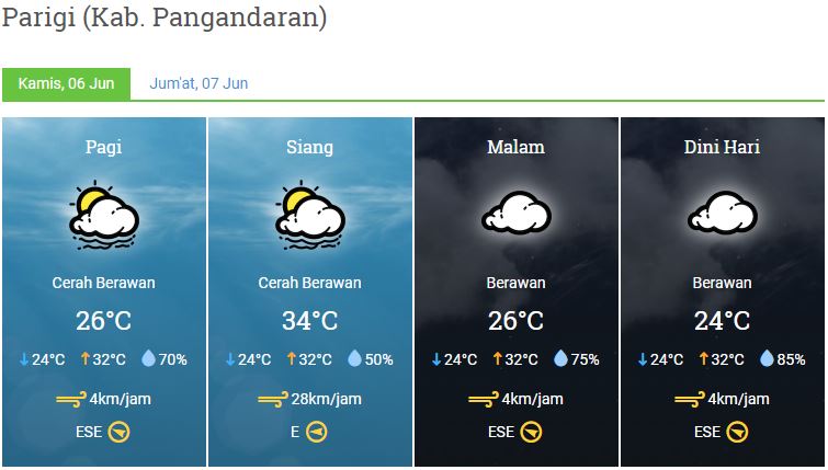 Laporan Harian & Prakiraan Cuaca Kabupaten Pangandaran – Kamis, 06 Juni 2019