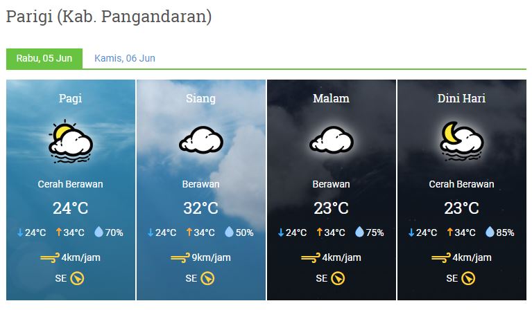 Laporan Harian & Prakiraan Cuaca Kabupaten Pangandaran – Rabu, 05 Juni 2019