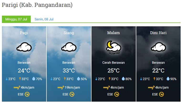 Laporan Harian Dan Prakiraan Cuaca Kabupaten Pangandaran, Minggu 07 Juli 2019