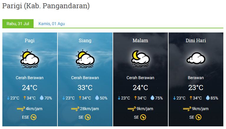 Laporan Harian & Prakiraan Cuaca Kabupaten Pangandaran – Rabu, 31 Juli 2019