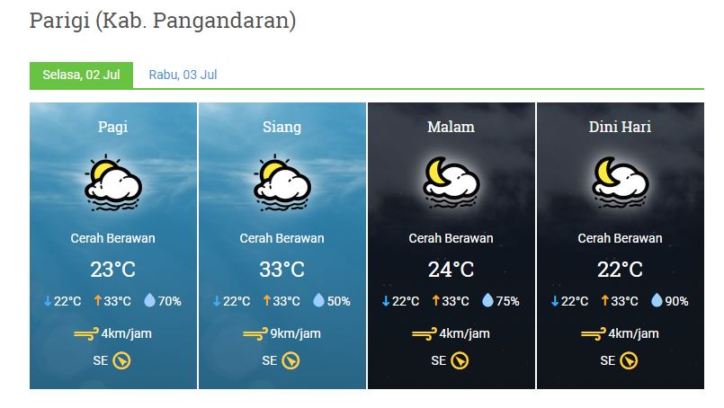 Kecepatan Angin : 4 km/jam – 9 km/jam