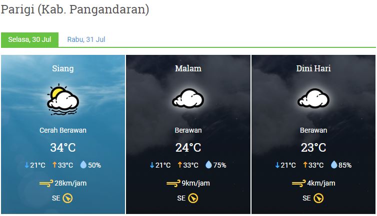 Laporan Harian & Prakiraan Cuaca Kabupaten Pangandaran – Selasa 30 Juli 2019