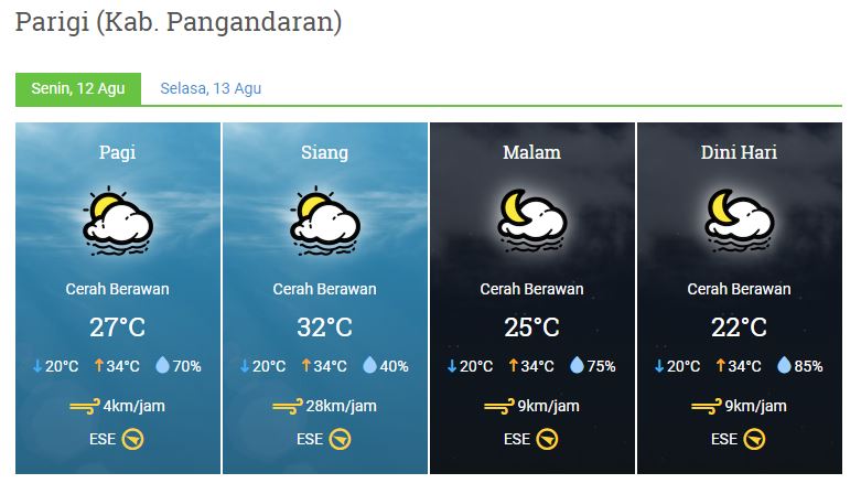 Laporan Harian & Prakiraan Cuaca Kabupaten Pangandaran – Senin, 12 Agustus 2019