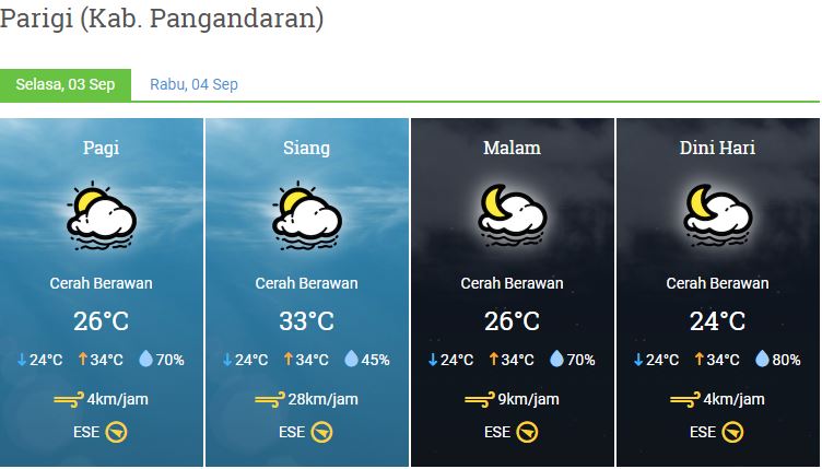 Laporan Harian Dan Prakiraan Cuaca Kabupaten Pangandaran – Selasa, 03 September 2019