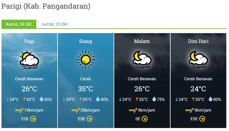 LAPORAN HARIAN & PRAKIRAAN CUACA KABUPATEN PANGANDARAN – Kamis, 24 OKTOBER 2019