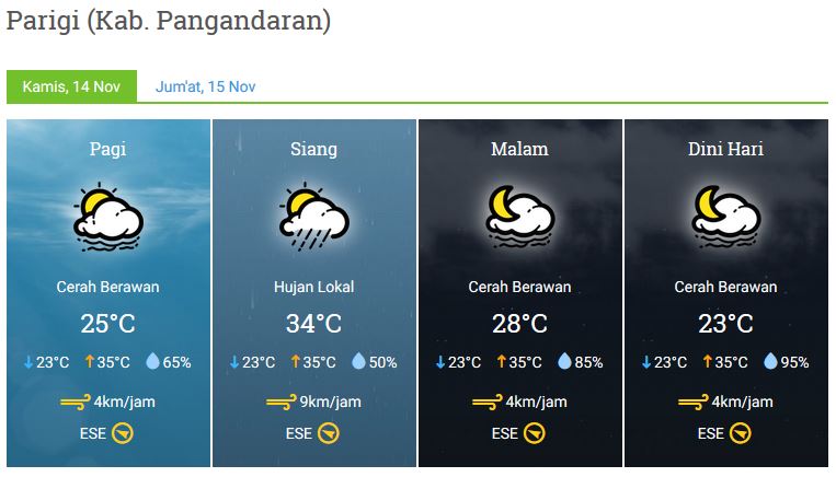 Laporan Harian & Prakiraan Cuaca Kabupaten Pangandaran – Kamis, 14 November 2019