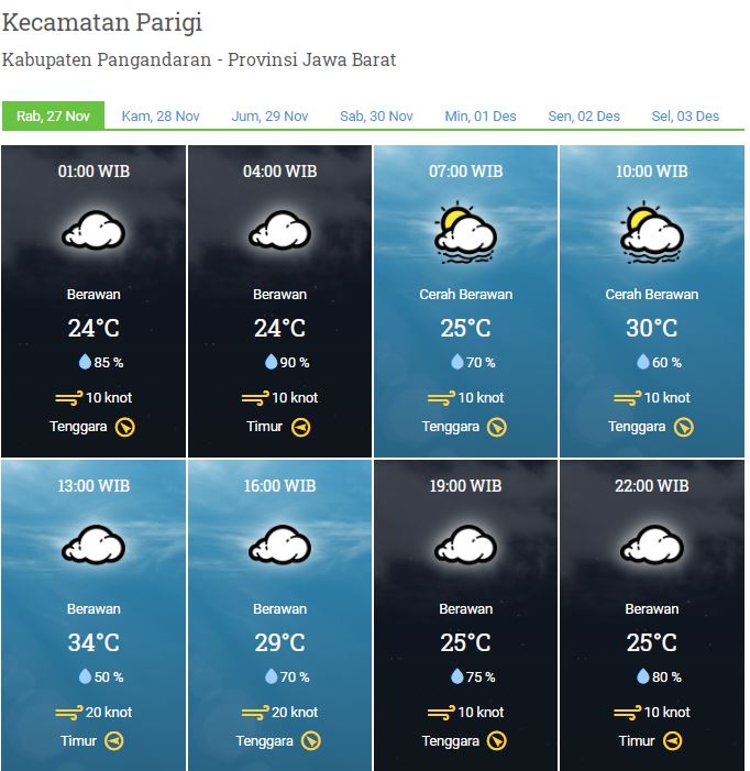 LAPORAN HARIAN DAN PRAKIRAAN CUACA KABUPATEN PANGANDARAN – RABU, 27 NOVEMBER 2019