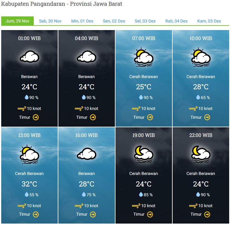 Laporan Harian & Prakiraan Cuaca Kabupaten Pangandaran Jumat, 29 November 2019