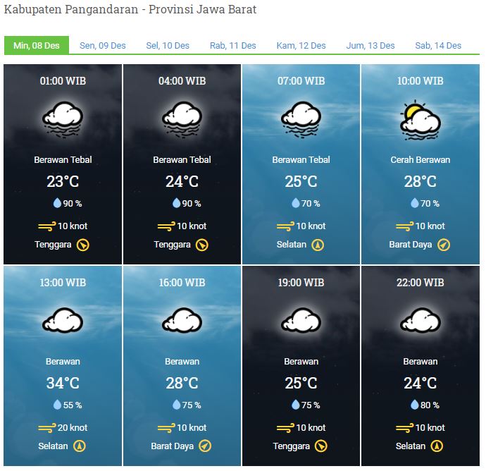 Laporan Harian & Prakiraan Cuaca Kabupaten Pangandaran – Minggu, 08 Desember 2019