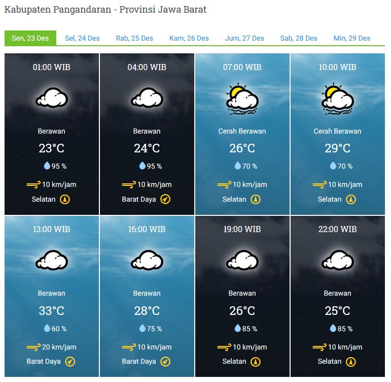 LAPORAN HARIAN DAN PRAKIRAAN CUACA KABUPATEN PANGANDARAN – SENIN, 23 DESEMBER 2019