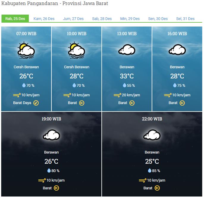 Laporan Harian & Prakiraan Cuaca Kabupaten Pangandaran – Rabu,25 Desember 2019