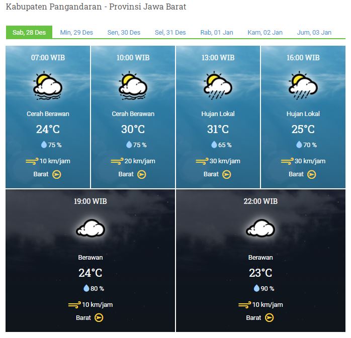 Laporan Harian & Prakiraan Cuaca Kabupaten Pangandaran – Sabtu, 28 Desember 2019