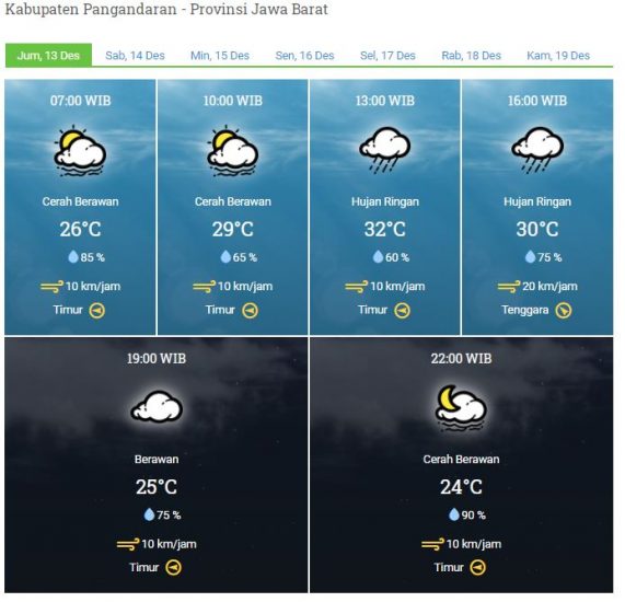 Laporan Harian & Prakiraan Cuaca Kabupaten Pangandaran – Jumat, 13 Desember 2019