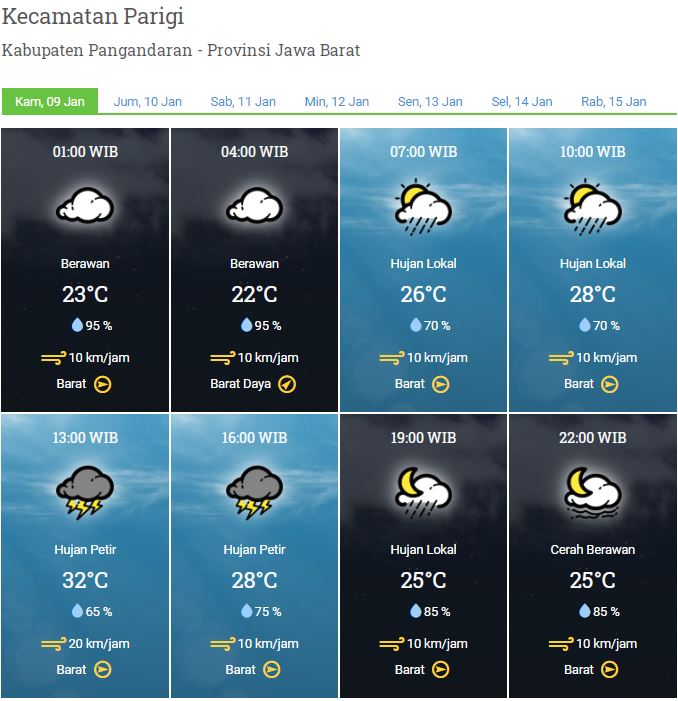 Laporan Harian & Prakiraan Cuaca Kabupaten Pangandaran – Kamis, 09 Januari 2020