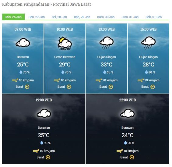 Kecepatan Angin : 10 km/jam – 20 km/jam