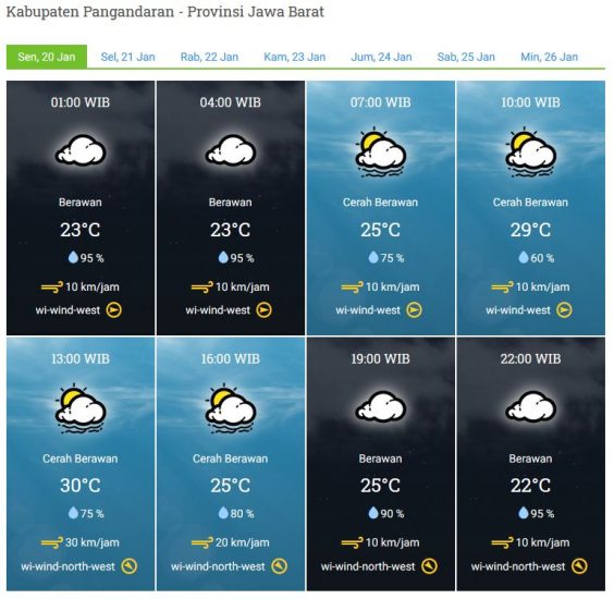 Kecepatan Angin : 10 km/jam – 30 km/jam