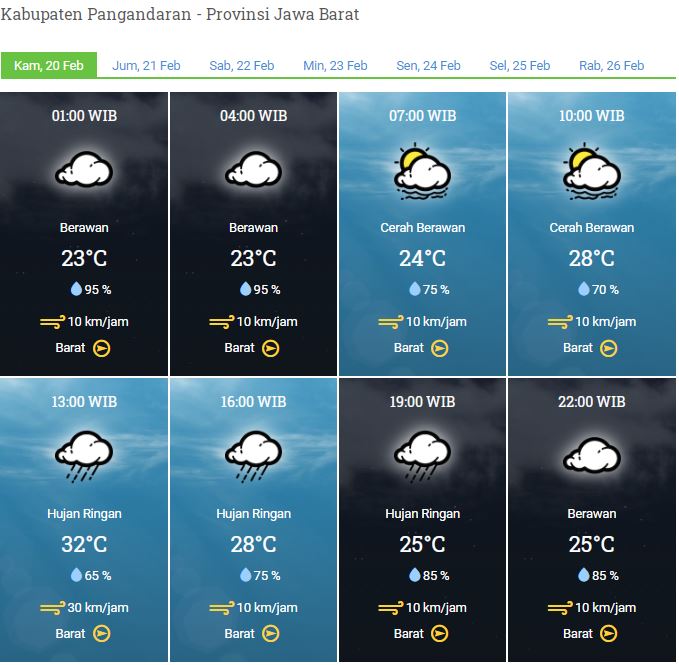 Laporan Harian & Prakiraan Cuaca Kabupaten Pangandaran – Kamis, 20 Februari 2020