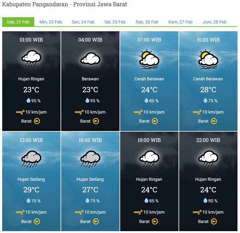 Laporan Harian & Prakiraan Cuaca Kabupaten Pangandaran – Sabtu, 22 Februari 2020