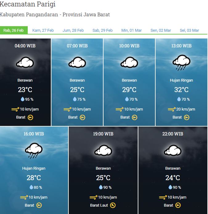 Laporan Harian & Prakiraan Cuaca Kabupaten Pangandaran – Rabu, 26 Februari 2020