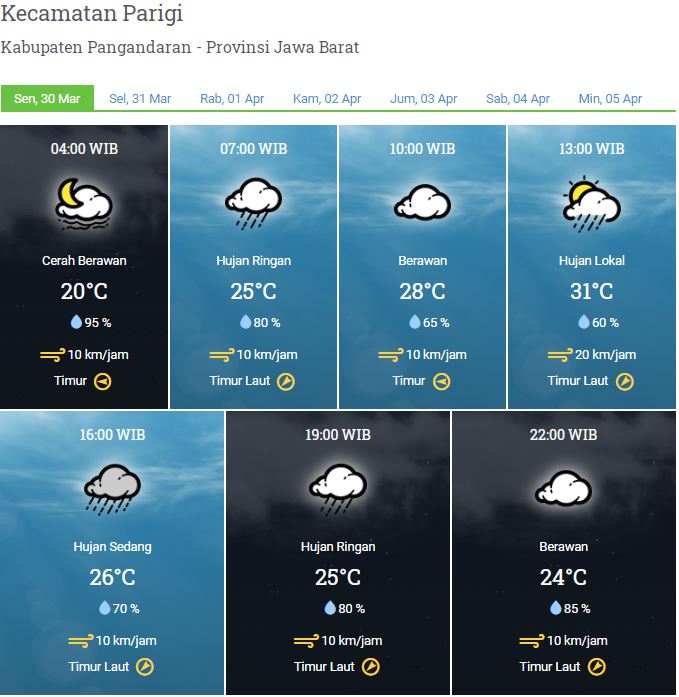 Laporan Harian & Prakiraan Cuaca Kabupaten Pangandaran – Senin, 30 Maret 2020