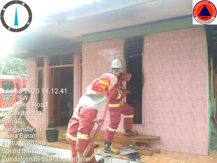 Pada saat ibu Siti sedang mencuci piring di dapur tiba-tiba beliau mencium bau asap yang sangat menyengat, lalu beliau langsung melihat ke bagian tengah rumah ternyata api sudah besar membakar kamar bagian depan, sontak ibu Siti berteriak meminta tolong sampai terdengar oleh para tetangga lalu melakukan pemadaman dengan alat seadanya sampai 10 menit kemudian DAMKAR Kab. Pangandaran sampai ke lokasi untuk melakukan pemadaman.