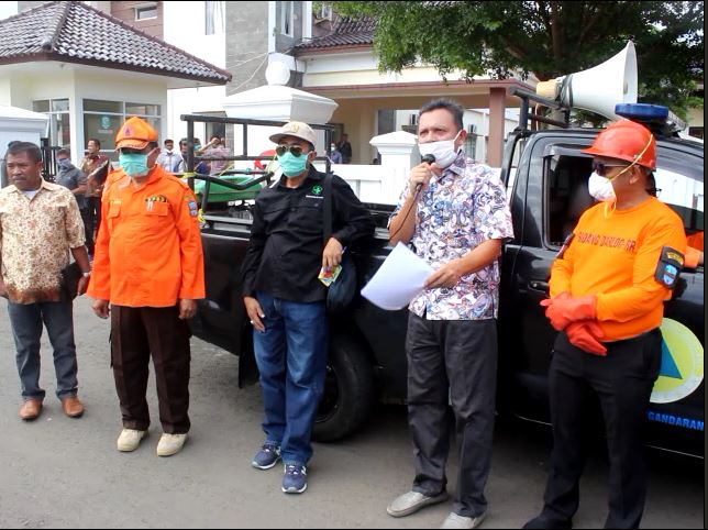 Pangandaran, 26 Maret 2020. Pemerintah Kabupaten Pangandaran terus bekerja keras untuk mencegah penyebaran Virus Corona (COVID-19) di Kabupaten Pangandaran. Kamis (26/03), Kepala Pelaksana Badan Penanggulangan Bencana Daerah (BPBD) Kabupaten Pangandaran Dr. Drs. H. Nana Ruhena, M.M selaku Team Gugus Tugas Percepatan Penanganan COVID-19 menugaskan TRC, Damkar serta Pusdalops-PB untuk melaksanakan penyemprotan cairan disinfektan. Penyemprotan difokuskan di beberapa lokasi yang ada di Kabupaten Pangandaran.