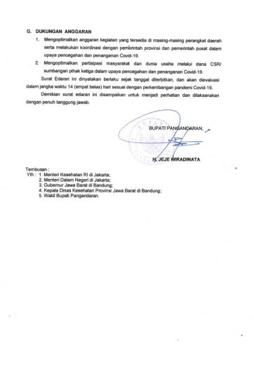 Surat Edaran Bupati Tentang Pencegahan dan Penanganan Corona Virus Disease-19 (Covid 19) Di Kabupaten Pangandaran