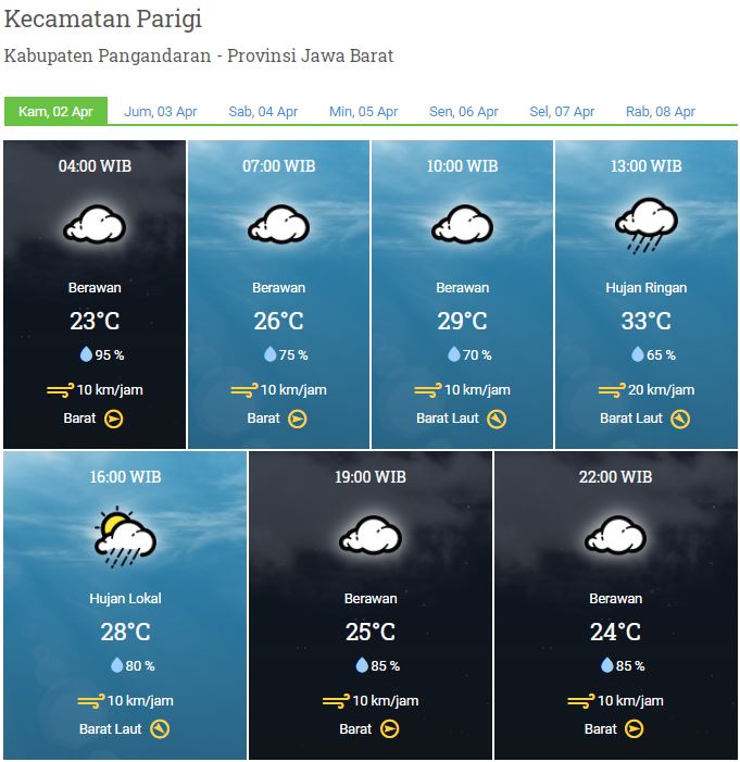 Laporan Harian & Prakiraan Cuaca Kabupaten Pangandaran – Kamis, 02 April 2020