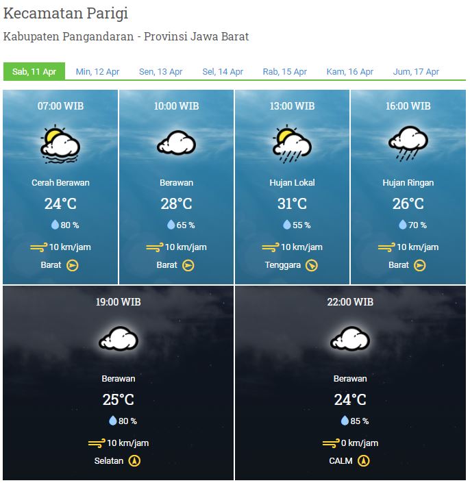 Laporan Harian Dan Prakiraan Cuaca Kabupaten Pangandaran Sabtu, 11 April 2020