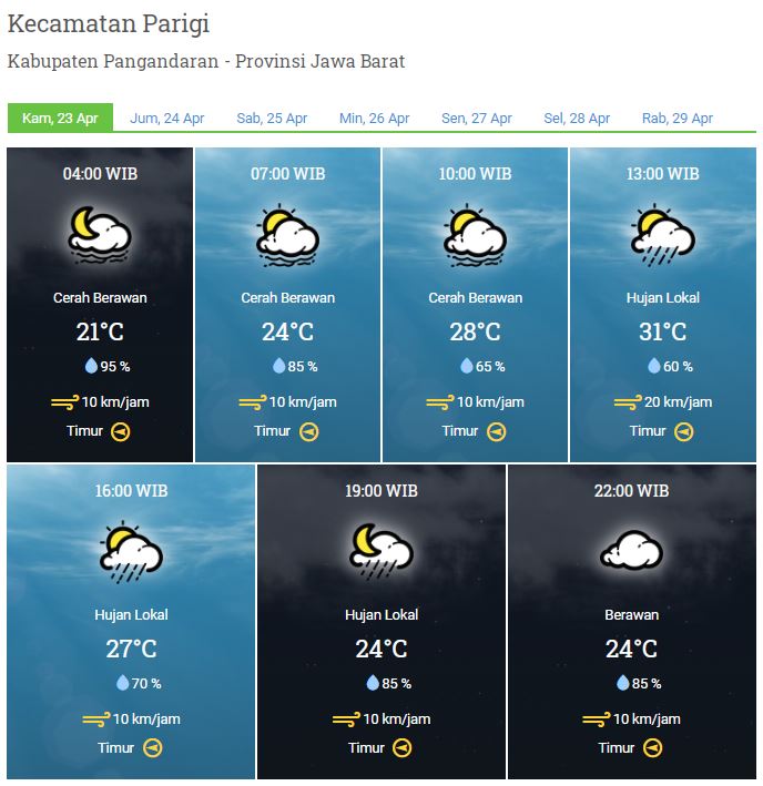 Laporan Harian Dan Prakiraan Cuaca Kabupaten Pangandaran Kamis, 23 April 2020