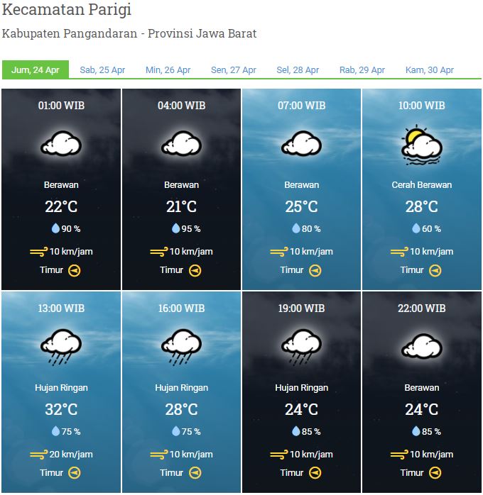 Laporan Harian Dan Prakiraan Cuaca Kabupaten Pangandaran Jumat, 24 April 2020
