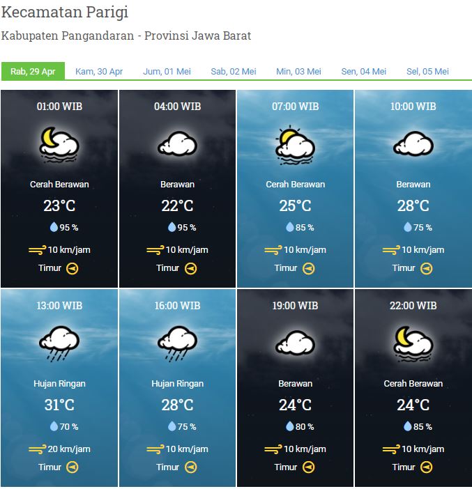 LAPORAN HARIAN PUSDALOPS PB KAB. PANGANDARAN BADAN PENANGGULANGAN BENCANA DAERAH KAB. PANGANDARAN A. Waktu : Rabu, 29 April 2020 Pukul 06.50 WIB B. Kejadian Bencana : Nihil C. Prakiraan Cuaca : Pagi : Berawan Siang : Hujan Ringan Malam : Berawan Dini Hari : Berawan Suhu : 19°C – 32°C Kelembaban : 75 % – […]