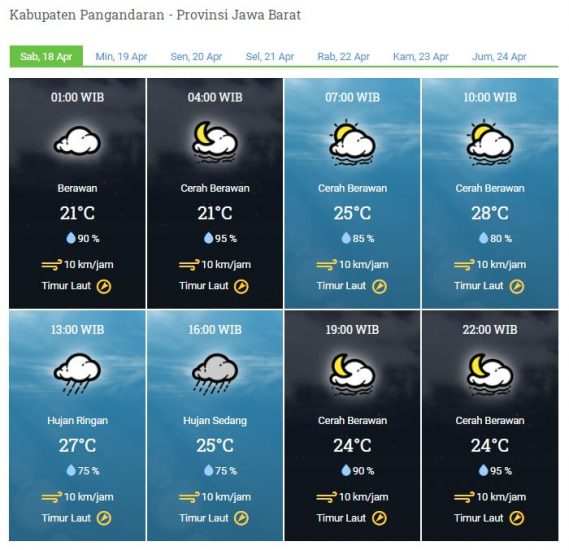 Laporan Harian Dan Prakiraan Cuaca Kabupaten Pangandaran Sabtu, 18 April 2020