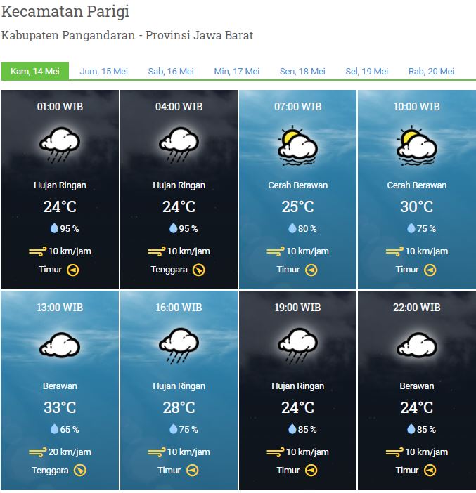 LAPORAN HARIAN DAN PRAKIRAAN CUACA KABUPATEN PANGANDARAN KAMIS, 14 MEI 2020