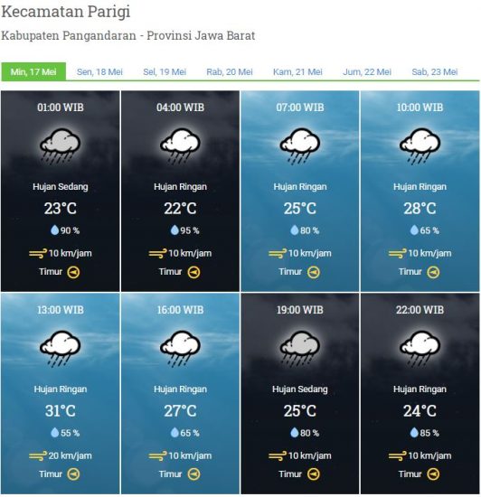 Kecepatan Angin : 10 km/jam – 20 km/jam